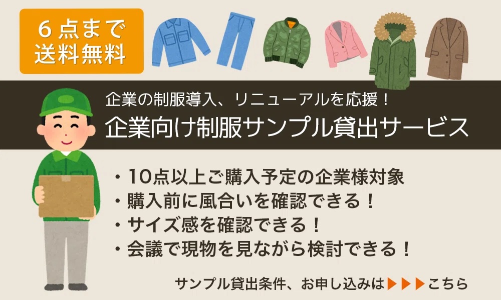弊社では10点以上のご購入を検討中の企業様にサンプルのお貸出を行っております。購入前に生地の風合いやサイズ感を確認したり、会議で現物を見ながら検討ができます。ぜひご利用ください。
